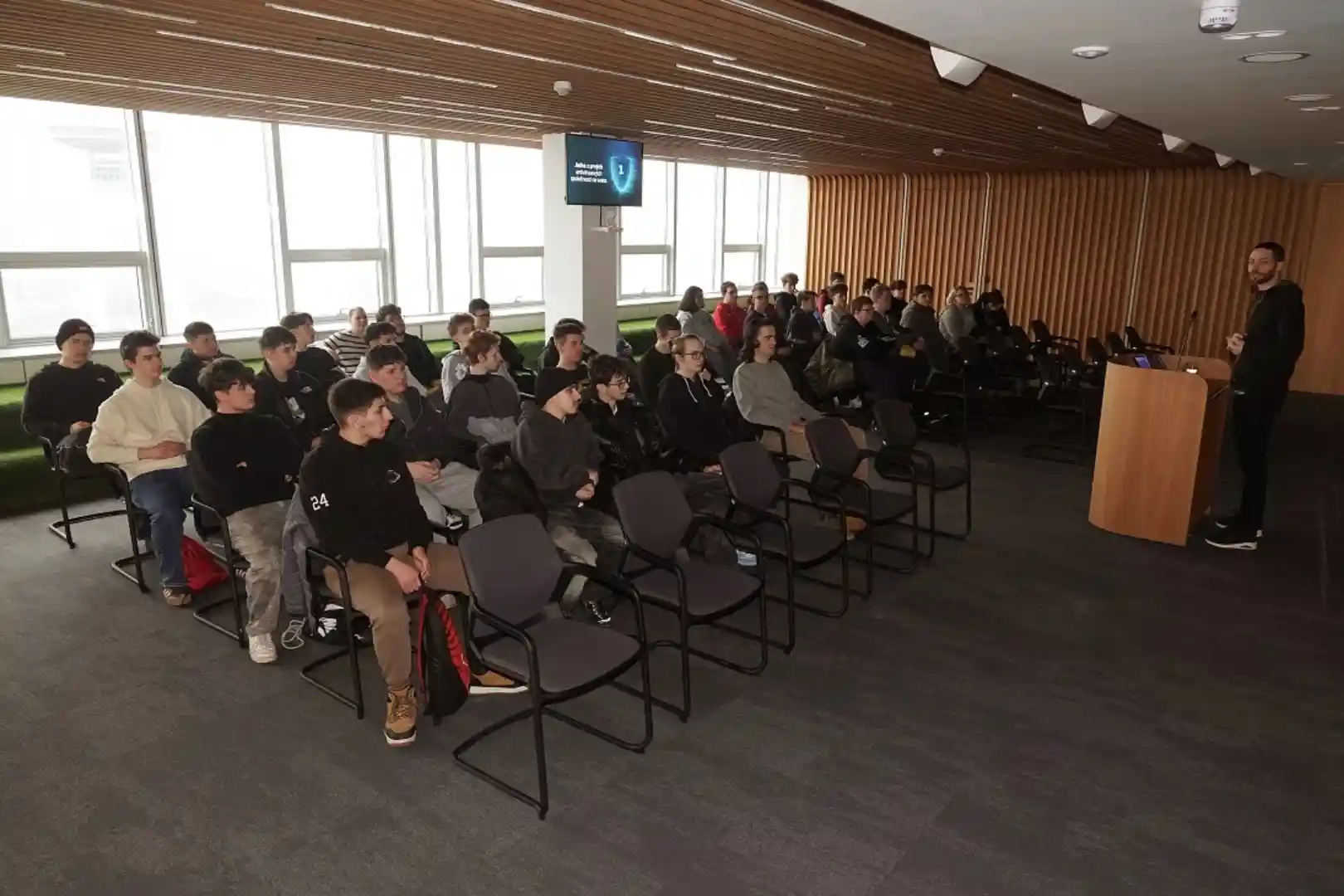 Iskolánk III.D, III.F és I.L osztályos diákjai február 6.-án szakmai kiránduláson vettek részt az ESET biztonságtechnikai vállalat pozsonyi központjában. Ondrej Kubovič, a vállalat kiberbiztonsági szakértője egy érdekes prezentáción keresztül bemutatta a vállalat történetét, fejlődését, elfoglalt pozícióját jelenleg a világpiacon, valamint, hogy hogyan is kell elképzelni az ott dolgozó szakemberek munkáját. Megtörtént eseteket is ismertetett, melyeken keresztül elmagyarázta, hogyan történik egy antivírus program kifejlesztése, ill. különböző vírusfajták működését szimulálva bemutatták, hogyan dolgozik a kártékony program a számítógép működése közben. Végül a központi terembe is beléphettünk, amit az amerikai űrközpont mintájára Houston-nak neveznek. Itt nagy monitorokon különböző grafikonok segítségével követik az állomások által érzékelt támadásokat, ill. a szoftverek naprakészségét, valamint az elemzők részletesen megvizsgálják az egyes támadásokat.