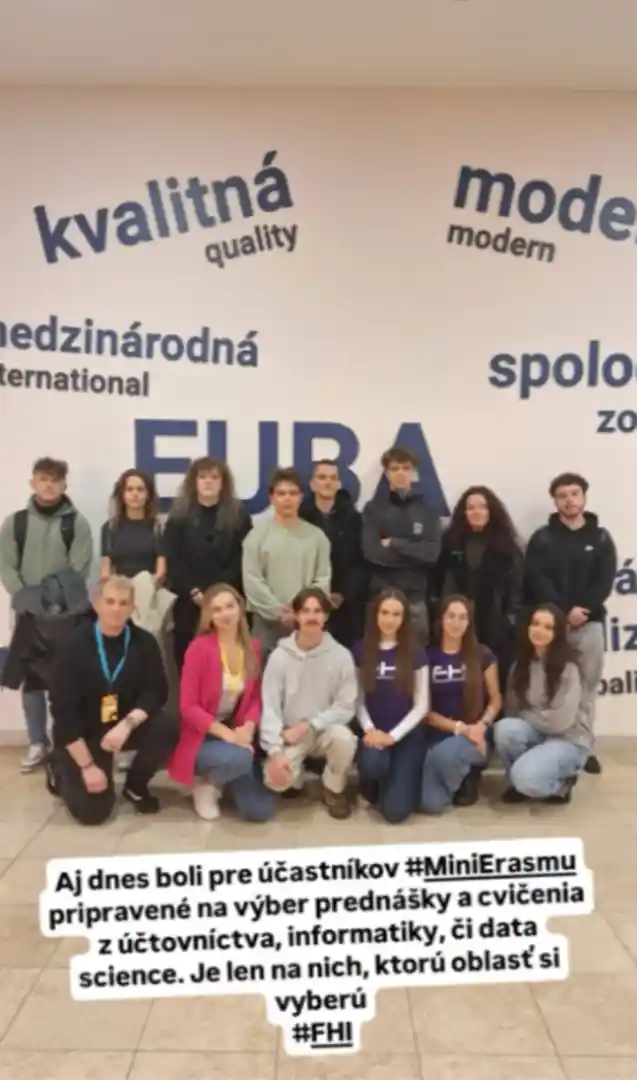 V období od 23. do 26. novembra 2025 sa dvaja študenti našej školy zúčastnili už tradičného programu mini Erasmus. Cieľom tejto iniciatívy je pomôcť maturantom pri výbere pre nich najvhodnejšej vysokej školy a študijného odboru. Účastníci sa počas niekoľkých dní môžu zapojiť do prednášok a praktických cvičení na nimi vybraných inštitúciách, vďaka čomu získajú priame skúsenosti a lepšie spoznajú fungovanie aj atmosféru vysokoškolského života.