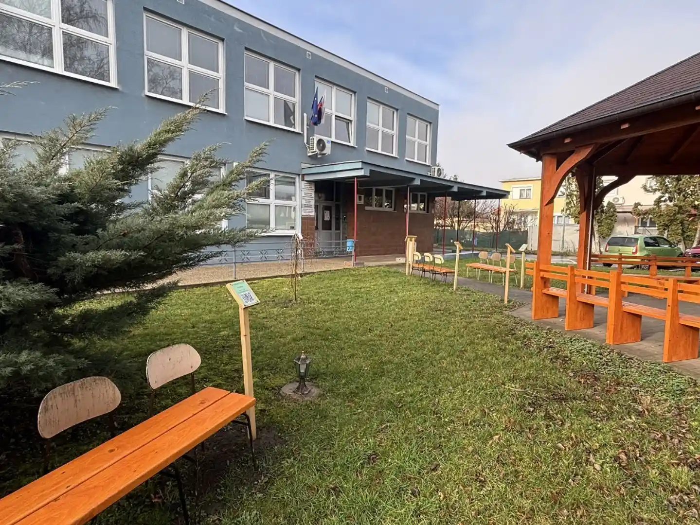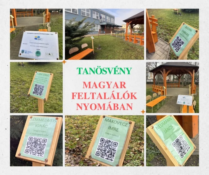 Areál našej školy sa obohatil o novú, jedinečnú iniciatívu – bol zrealizovaný projekt s názvom „Náučný chodník v stopách maďarských vynálezcov“. V okolí krytého pavilónu vznikol náučný chodník s informačnými tabuľami vybavenými QR kódmi, ktoré predstavujú osobnosti ako Ernő Rubik, Farkas Bolyai, Imre Makovecz, Ignaz Semmelweis, János Irinyi a John von Neumann. Projekt ponúka žiakom možnosť samostatného digitálneho objavovania a rozširovania poznatkov modernou formou. Realizácia bola podporená z prostriedkov Stredoškolského participatívneho rozpočtu na rok 2025, čím vznikla ako výsledok spoločnej participácie a spolupráce. Nový exteriérový vzdelávací priestor podporuje poznávanie národných hodnôt a zároveň poskytuje inšpiratívne prostredie pre vyučovanie v prírode i komunitné podujatia.