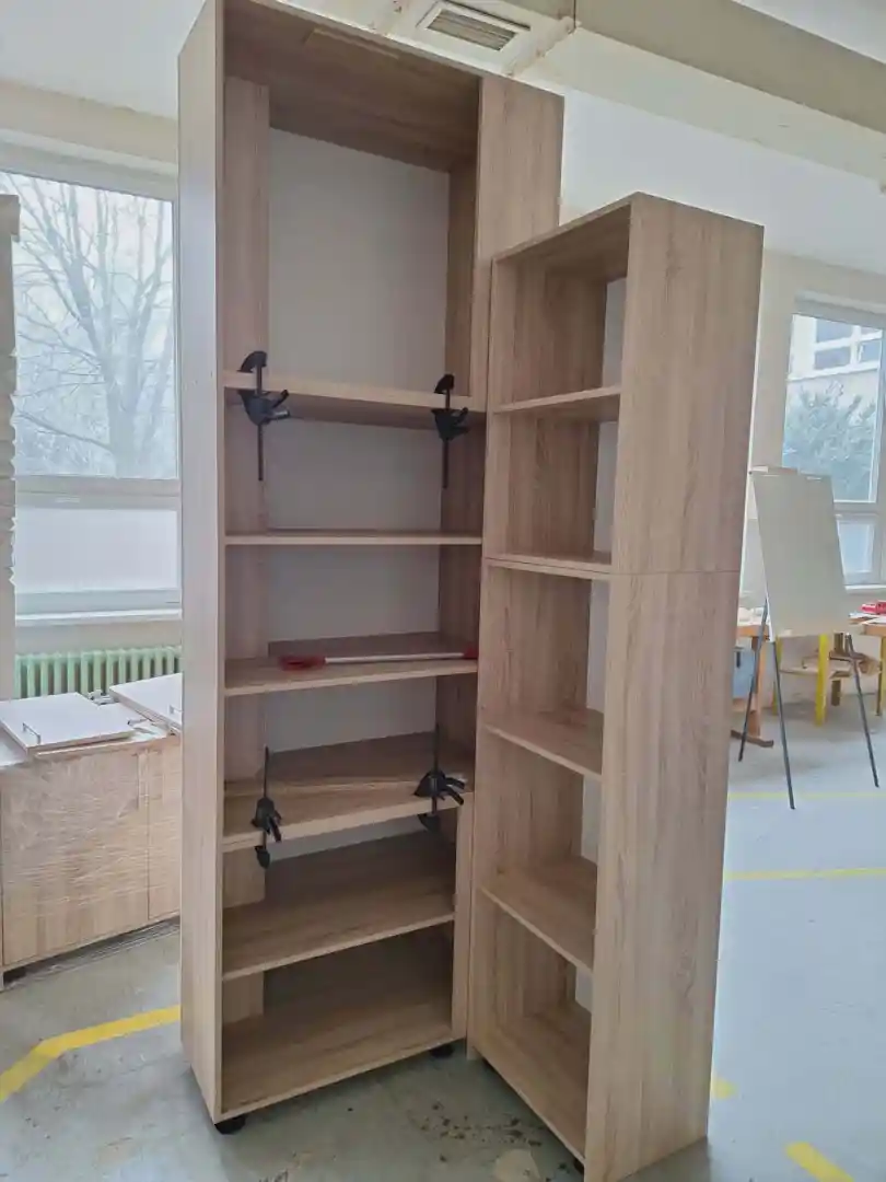 Naši žiaci odboru stolár opäť preukázali svoju odbornú pripravenosť a usilovnosť. Výsledkom ich práce je esteticky a funkčne spracovaný policový systém s dvierkami, ktorý obohatil odbornú učebňu žiakov študijného odboru staviteľstvo.